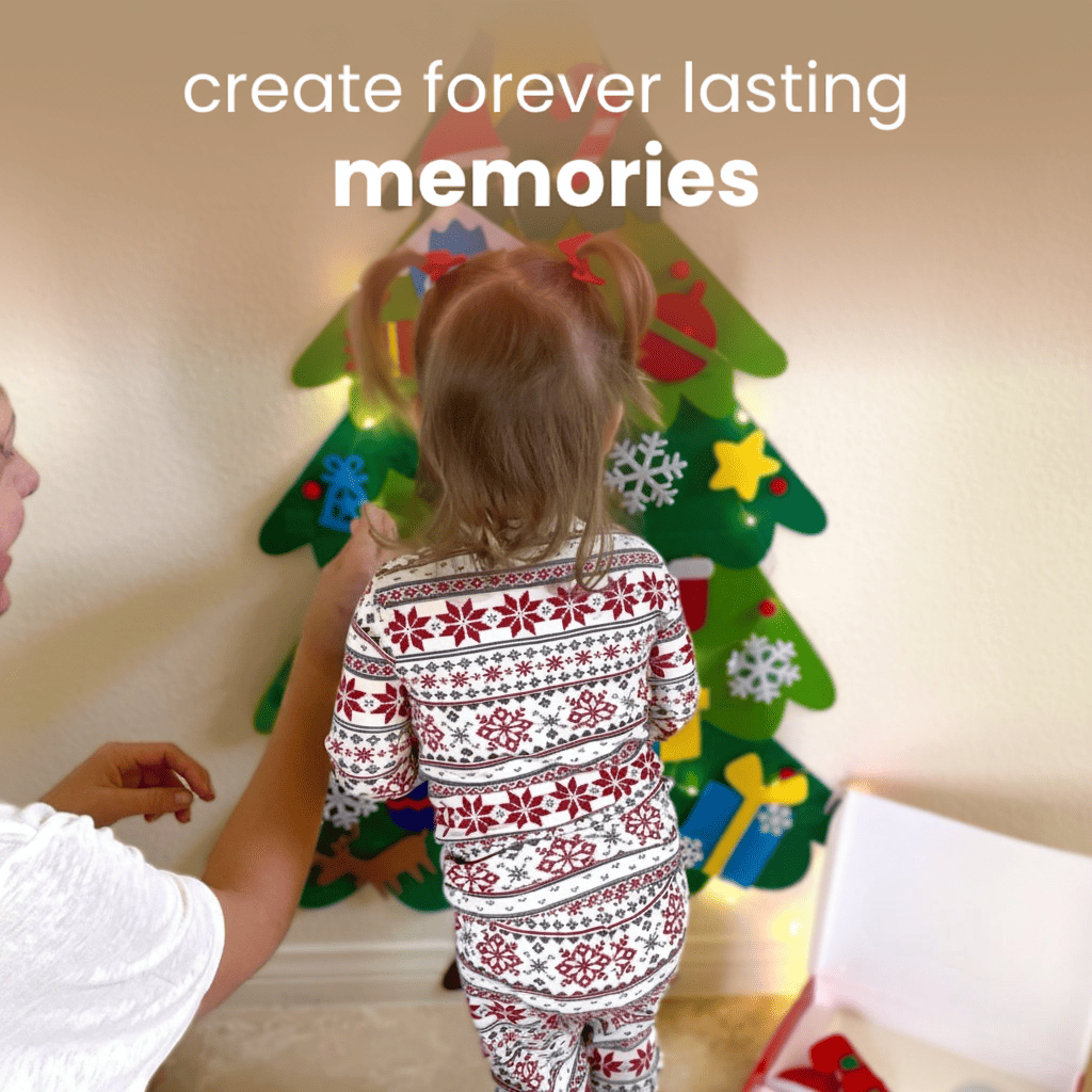 Give your child their soft, at-their-height tree. They decorate and play there, not on the big glass-ornament tree - so you can stop worrying and say “yes”.