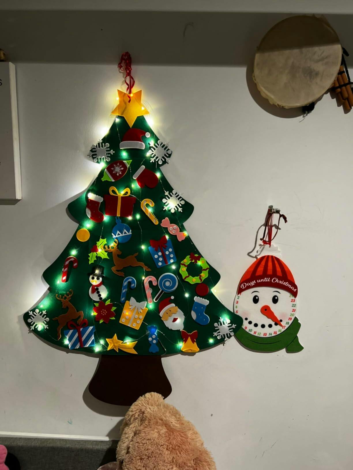 We've got you covered! Your felt Christmas tree comes with 32 delightful ornaments, making it ready for decorating right out of the box. Additionally, we're including free fairy lights to add a magical glow to your holiday display. This all-in-one package ensures that you have everything you need to create a festive and enchanting holiday experience for your little ones!